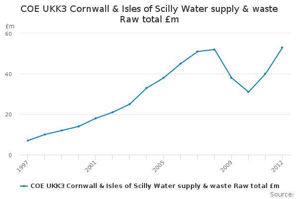 Download this time seriesCOE UKK3 Cornwall & Isles of Scilly Water supply & waste Raw total £m