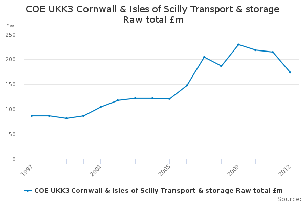 Download this time seriesCOE UKK3 Cornwall & Isles of Scilly Transport & storage Raw total £m