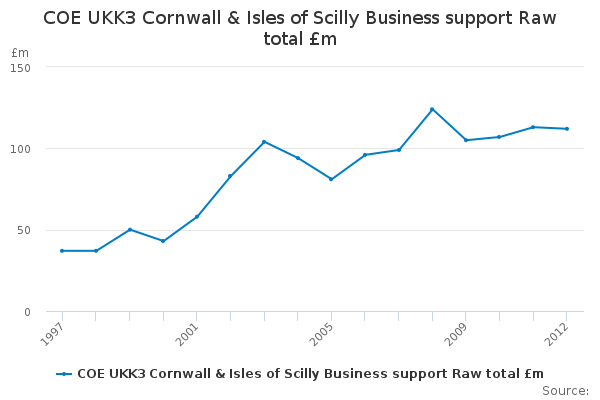 Download this time seriesCOE UKK3 Cornwall & Isles of Scilly Business support Raw total £m