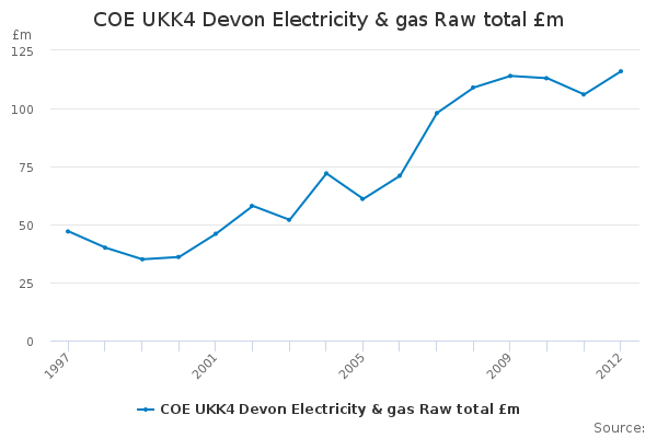 Download this time seriesCOE UKK4 Devon Electricity & gas Raw total £m