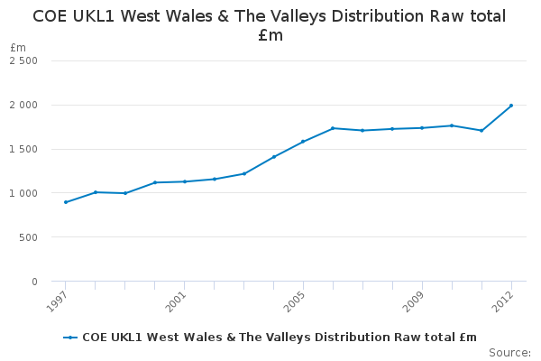 Download this time seriesCOE UKL1 West Wales & The Valleys Distribution Raw total £m
