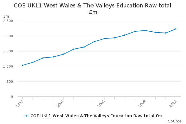Download this time seriesCOE UKL1 West Wales & The Valleys Education Raw total £m