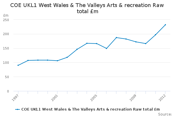 Download this time seriesCOE UKL1 West Wales & The Valleys Arts & recreation Raw total £m