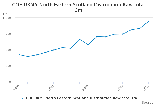 Download this time seriesCOE UKM5 North Eastern Scotland Distribution Raw total £m