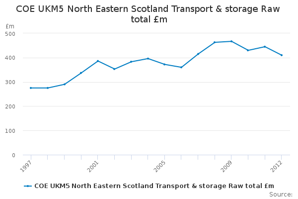 Download this time seriesCOE UKM5 North Eastern Scotland Transport & storage Raw total £m