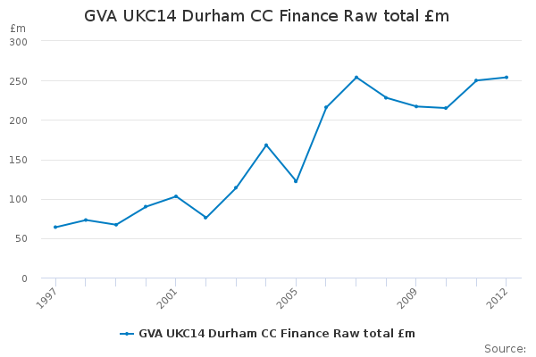 Download this time seriesGVA UKC14 Durham CC Finance Raw total £m