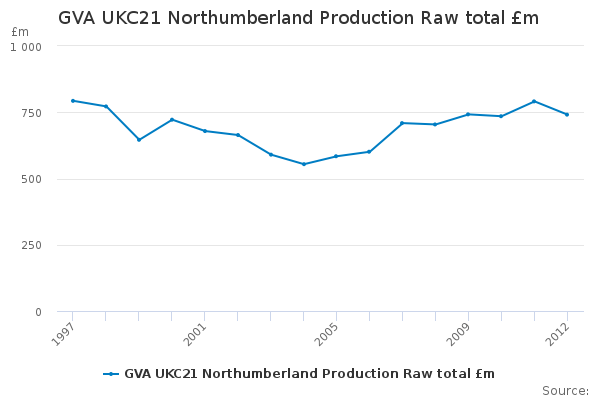 Download this time seriesGVA UKC21 Northumberland Production Raw total £m