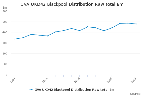 Download this time seriesGVA UKD42 Blackpool Distribution Raw total £m