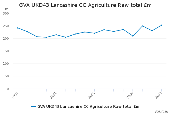 Download this time seriesGVA UKD43 Lancashire CC Agriculture Raw total £m