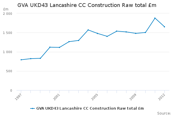 Download this time seriesGVA UKD43 Lancashire CC Construction Raw total £m