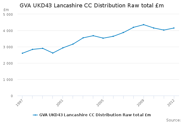 Download this time seriesGVA UKD43 Lancashire CC Distribution Raw total £m