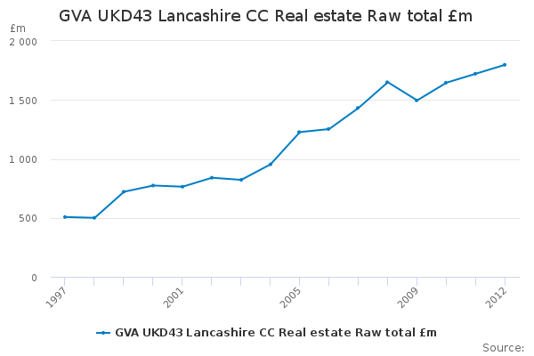 Download this time seriesGVA UKD43 Lancashire CC Real estate Raw total £m