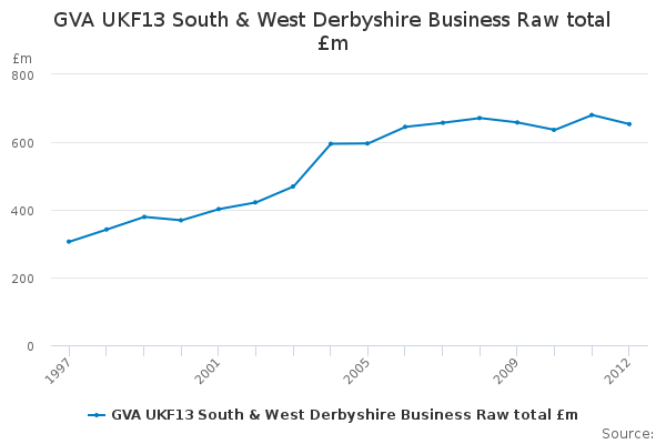 Download this time seriesGVA UKF13 South & West Derbyshire Business Raw total £m