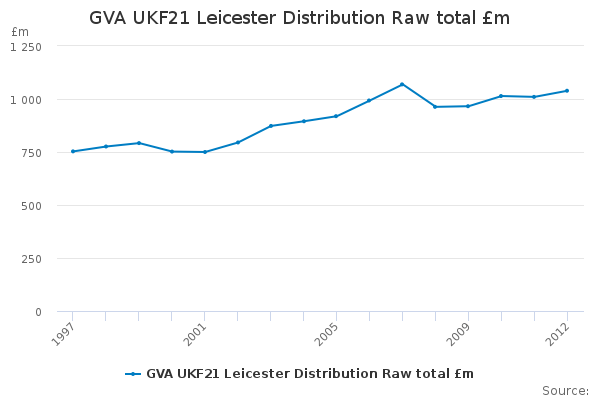 Download this time seriesGVA UKF21 Leicester Distribution Raw total £m