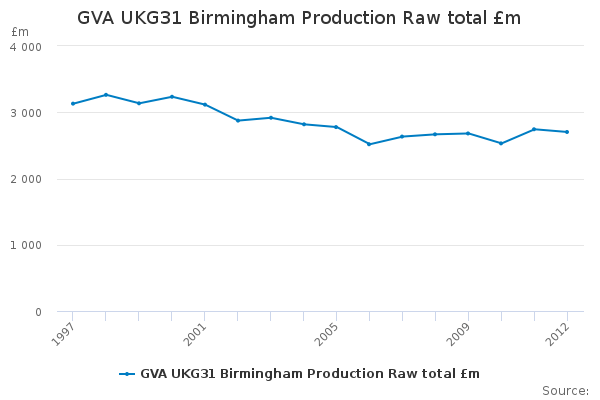 Download this time seriesGVA UKG31 Birmingham Production Raw total £m