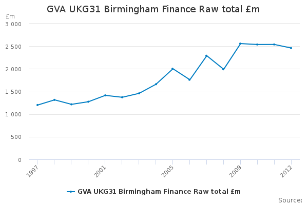 Download this time seriesGVA UKG31 Birmingham Finance Raw total £m