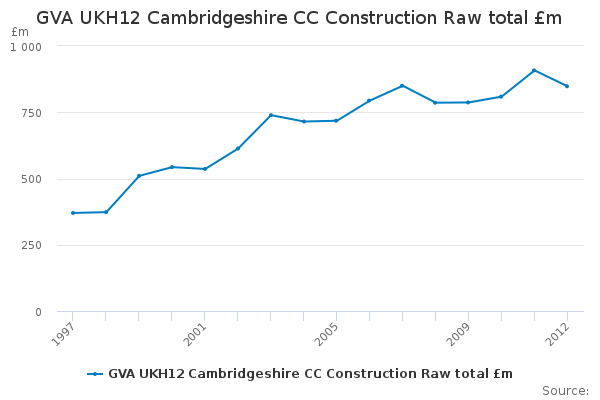 Download this time seriesGVA UKH12 Cambridgeshire CC Construction Raw total £m