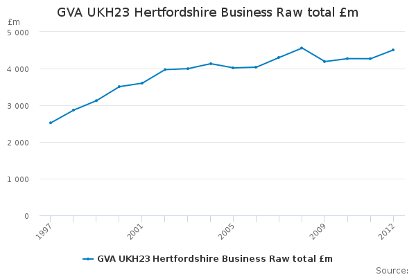 Download this time seriesGVA UKH23 Hertfordshire Business Raw total £m