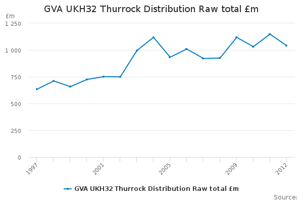 Download this time seriesGVA UKH32 Thurrock Distribution Raw total £m