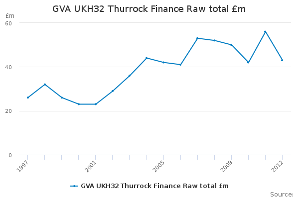 Download this time seriesGVA UKH32 Thurrock Finance Raw total £m