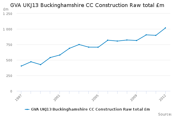 Download this time seriesGVA UKJ13 Buckinghamshire CC Construction Raw total £m