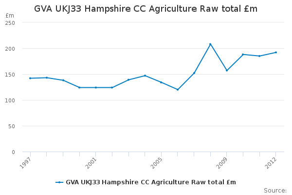 Download this time seriesGVA UKJ33 Hampshire CC Agriculture Raw total £m