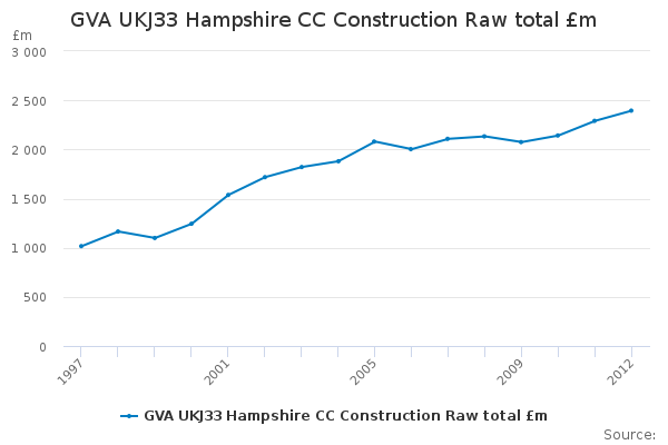 Download this time seriesGVA UKJ33 Hampshire CC Construction Raw total £m