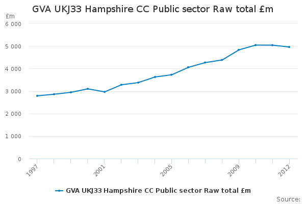 Download this time seriesGVA UKJ33 Hampshire CC Public sector Raw total £m