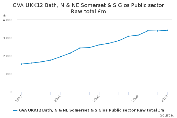 Download this time seriesGVA UKK12 Bath, N & NE Somerset & S Glos Public sector Raw total £m
