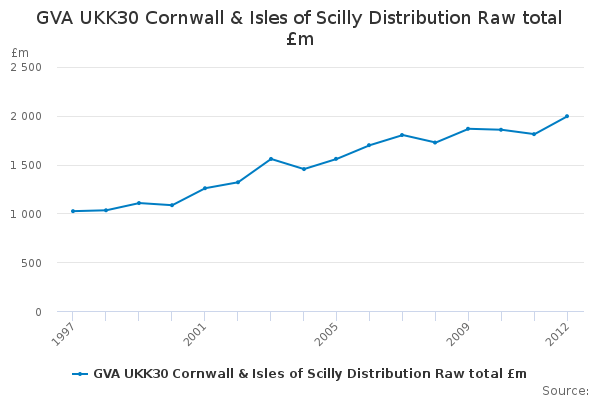 Download this time seriesGVA UKK30 Cornwall & Isles of Scilly Distribution Raw total £m