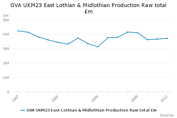 Download this time seriesGVA UKM23 East Lothian & Midlothian Production Raw total £m