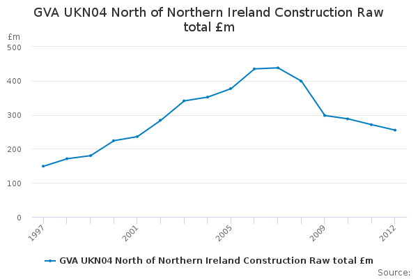 Download this time seriesGVA UKN04 North of Northern Ireland Construction Raw total £m