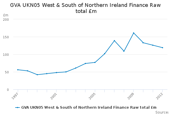 Download this time seriesGVA UKN05 West & South of Northern Ireland Finance Raw total £m
