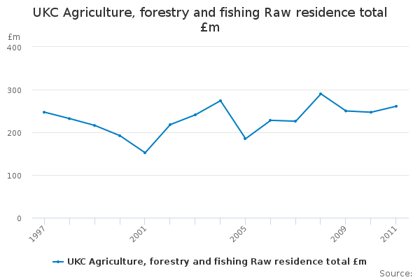 Download this time seriesUKC Agriculture, forestry and fishing Raw residence total £m