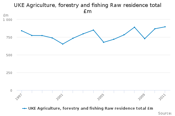 Download this time seriesUKE Agriculture, forestry and fishing Raw residence total £m