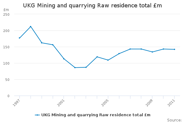 Download this time seriesUKG Mining and quarrying Raw residence total £m
