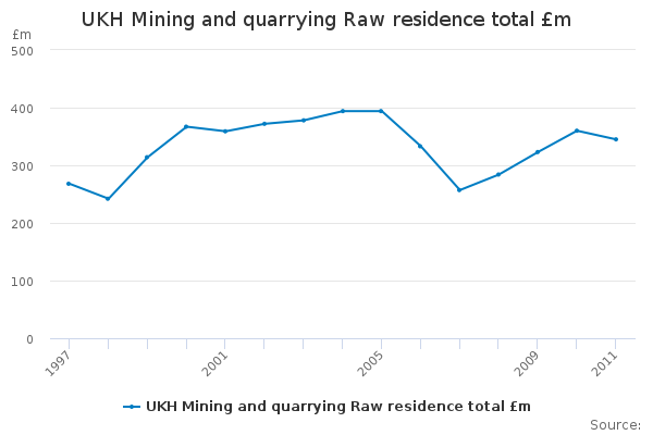 Download this time seriesUKH Mining and quarrying Raw residence total £m