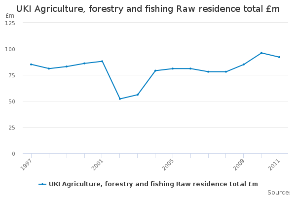 Download this time seriesUKI Agriculture, forestry and fishing Raw residence total £m