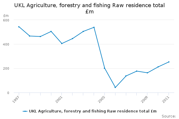Download this time seriesUKL Agriculture, forestry and fishing Raw residence total £m