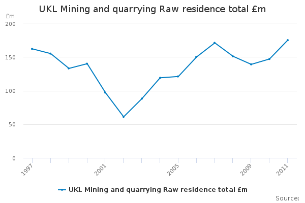 Download this time seriesUKL Mining and quarrying Raw residence total £m