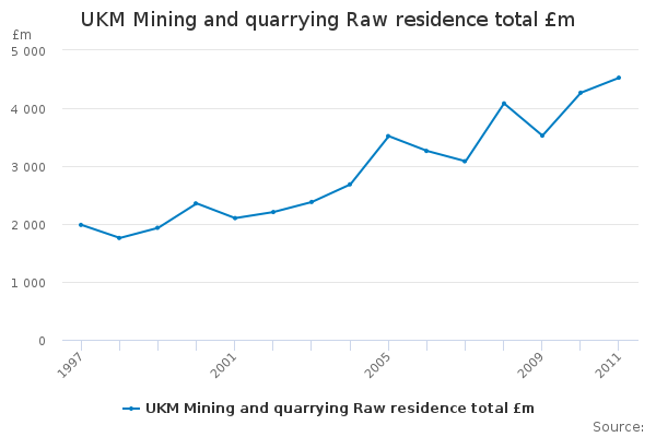 Download this time seriesUKM Mining and quarrying Raw residence total £m