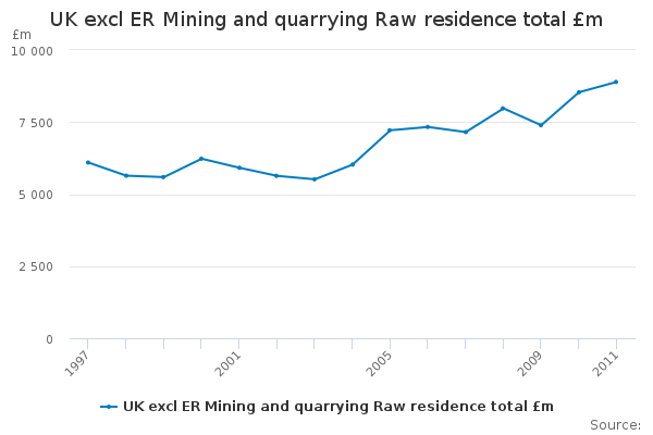 Download this time seriesUK excl ER Mining and quarrying Raw residence total £m