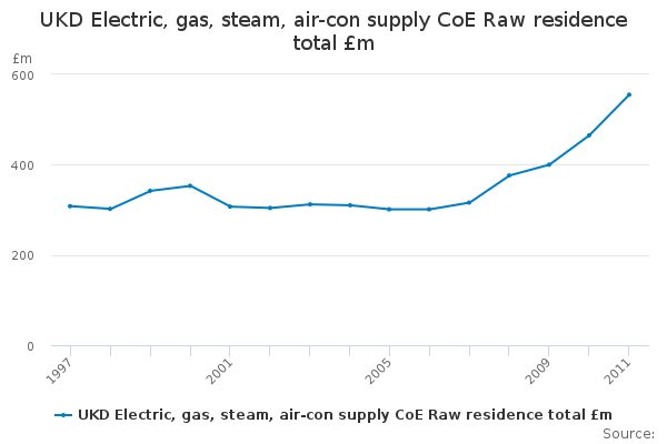 Download this time seriesUKD Electric, gas, steam, air-con supply CoE Raw residence total £m