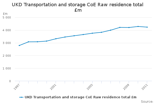 Download this time seriesUKD Transportation and storage CoE Raw residence total £m