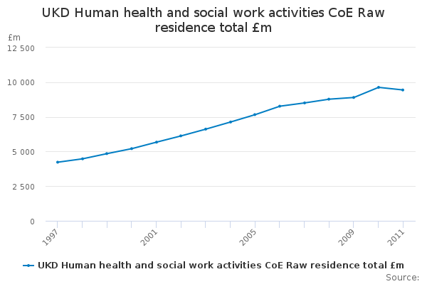 Download this time seriesUKD Human health and social work activities CoE Raw residence total £m