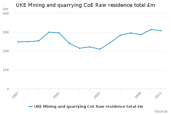 Download this time seriesUKE Mining and quarrying CoE Raw residence total £m