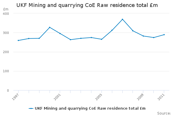 Download this time seriesUKF Mining and quarrying CoE Raw residence total £m