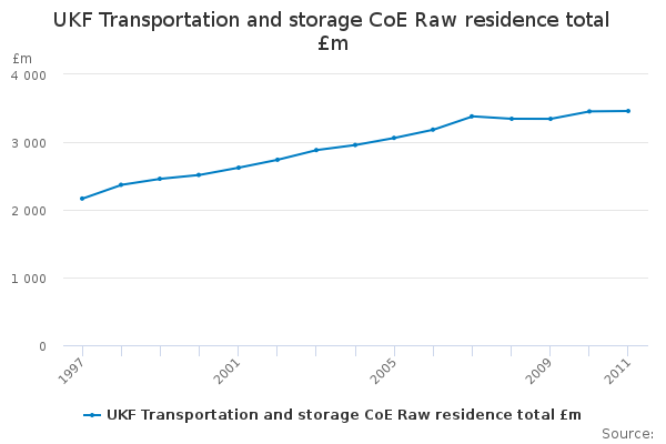 Download this time seriesUKF Transportation and storage CoE Raw residence total £m