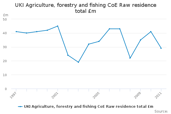 Download this time seriesUKI Agriculture, forestry and fishing CoE Raw residence total £m