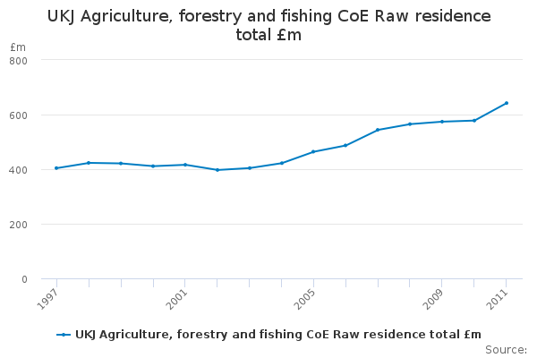 Download this time seriesUKJ Agriculture, forestry and fishing CoE Raw residence total £m